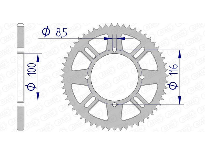 AFAM ALU REAR PROCESS PRODDED WITH AN ALLOY WHICE COMBINES Lightweight and Resistance. The High-Quality Manufacturing Process and the Cutting Precision Made AFAM A World Leader for Motorcycle Transmission Parts. Aluminum Ultra-Light Rear Procetaluminum 7075 T6TOP of Range Manufacturing and Quality LIGHTER THAN Steel Chain_pitch: 420.0 Material: Aluminum rear_prolet_teeth_count: 51.0 REAR_PROKET_PET_ 17104