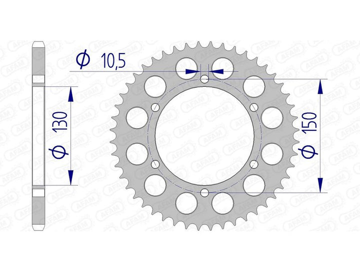 AFAM ALU REAR PROCESS PRODDED WITH AN ALLOY WHICE COMBINES Lightweight and Resistance. The High-Quality Manufacturing Process and the Cutting Precision Made AFAM A World Leader for Motorcycle Transmission Parts. Racing Type Aluminum Rear-Prochetultra-Light and Hardened Anodizationincreases Fiction Resistance and Durabilitytop of Range Manufacturing and Qualityessential for Racing Chain_pitch: 520.0 Material: Aluminum: REAR_PROET_SSION: ULTRA-LIGHT