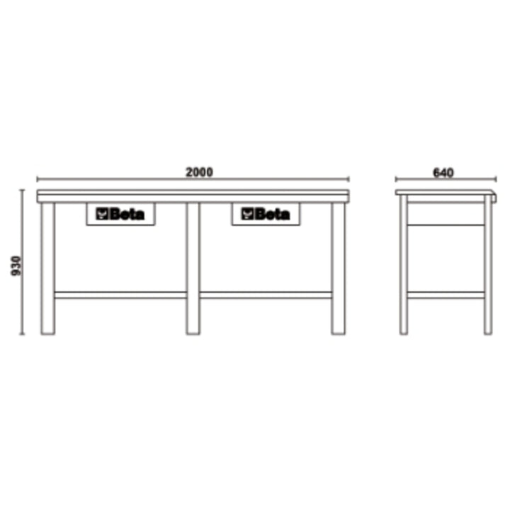 Worktop Made of Painted Sheet Metal with External Edgesteel Frame With 6 Supporting Legstatic Load Capacity: 1200 kgmatches Panel Toolholder 51100039; Cannot Be Fixed To Worktoptwo Drawers With Lockcan Be Fixed to Floor 2000x640x930mm Weight of 82kg