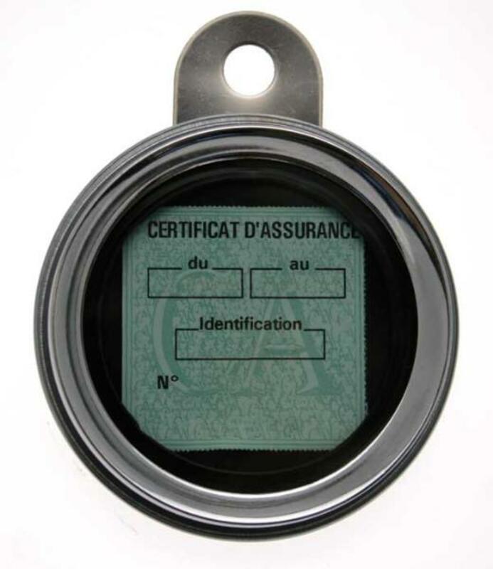 Round Insurance Label Holder with Fixing Foot. Color: Chrome Diameter Ø: 88 Materials: Steel
