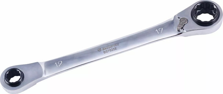 Precision 72-tooth Ratcheting Gears Need Only A 5 ° Swing Arc to move fasteners in Restricated Spaces, Special Ratchet Ring Design Enables Four Different Sizes On One Wrench, Hex Sizes Cover The Most Popular Metric Fasters On Motorcycles