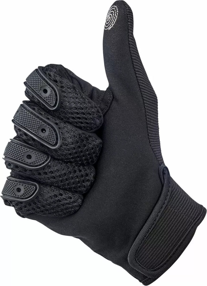 Synthetic Suede Palm Features Two-Way Stretch for a Snug, Comfortable Fit, Three-Ply, One-Piece Vented Polyester Back and Thumb Construction for Maximum Airflow, Flexible Thermoplastic Rubber Knuckle Guards and Shield Logo, Lycra® Expans and double-free polyester stitching, Thermoplastic Rubber Knuckle Guards on the Back of the Glove Provide Protection from Rocky Roost and Airborne Road Debris, A Double-Stitched Reinforcing Panel on the Thumb and Index Finger ADDS STREMTTH stitching in fingers and thumbs you operate smart screens