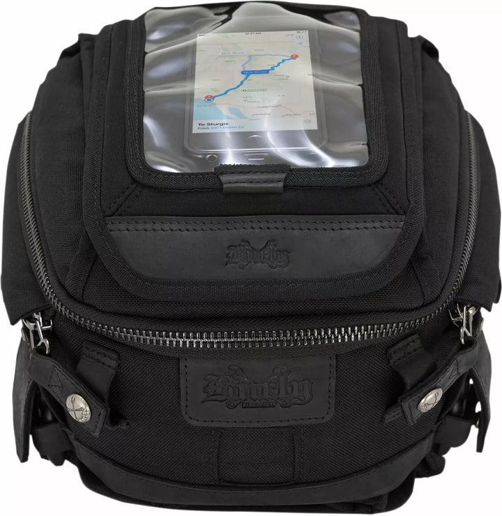 Easy On, Easy Off Magnetic System Reinforced with Safety Securing D-Ring Anchor Points for Mounting, If You're Riding Solo or Simply Want The Bag Out of the Way, it's equally at home on the tail and includes a tail on Includes a Convenient Magnetic Removable Map/Accessory Screen That Sticks Either Directly to the Bag Lid or Directly to the Tank, The Map Screen Is Designed With An Innovative Stretch Screen Design to Hold Any Variety of Smart Phones, Small Tables, And Ev as as well as Motorcycle Charging Accessories So You Can Keep Your Smart Phone, Tablet or Go-Pro Powered Up On A Long Ride, Two Exterior Zipper Pockets With Leather Securing Straps, "Anti-Flail Snap System", "Moto Centric" Speed ​​Buckle