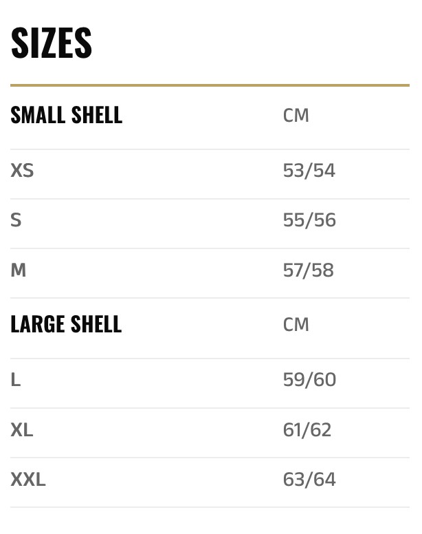 Two shell sizes for more optimal relationship to the main size where the small shell includes XS-M and large L-XXL.