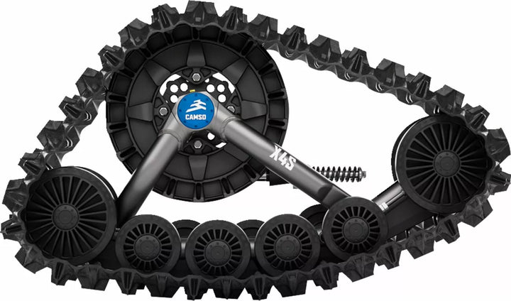 Adapter Kit Required for Mounting to Your Vehicle, Double Bearing Bolted On Wheels For Easier Serviceability, Idler and Mid-Roller Wheels, Increased Width (26 mm) Provides Better Track Support, New Geometry of Solid Beteel Frames Better Front Steering Steering Petter Economic Maintenance, The New Camso X4s is the Next Generation of Track System That Provides The Ultimate Versatility, Stability and Handling On Any Terrain All Year Round, This X4s Undercarriage Track Kit InCludes 4 Tracks