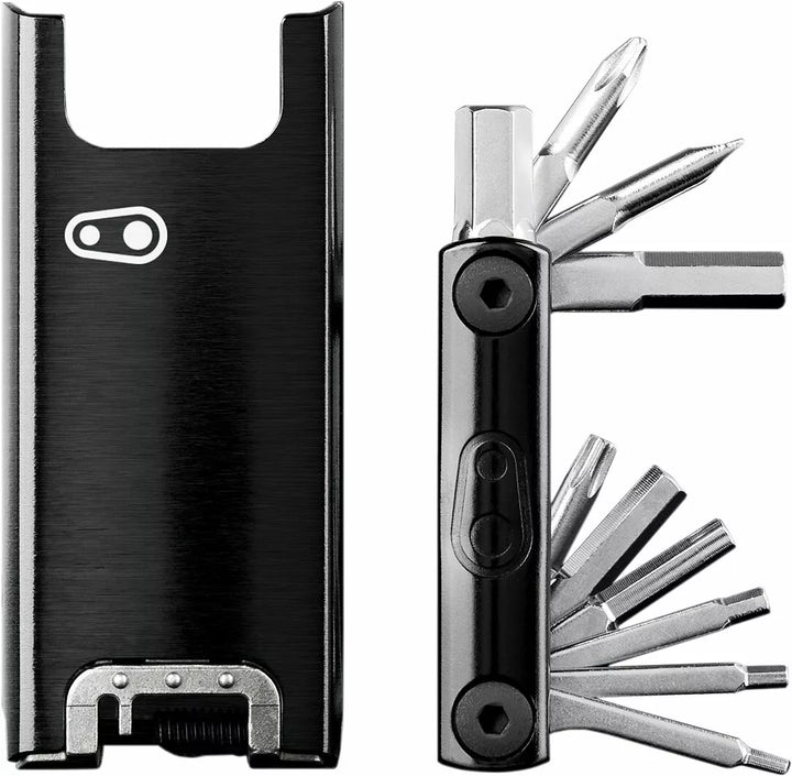 The F15 Multitool is a minimalist Yet Fully Capable Device Ready for a Variety of Riding Disciplines, Its Sleek Magnetic Case Not Only Stores Its Contents Compactly, But Also Servations as a Handle for Its 15 Tools, InCluding a Chain Breaker Bottle Opener for Those Post Ride Refreshments, Features:, Chain Tool Compatible With 8, 9, 10, 11, 12 -Speed, Hex Wrenches - #2, 2.5, 3, 4, 5, 6, 8, Screwdrivers - Phillips #2, Flat #1, Spoke Wrench - 164 g