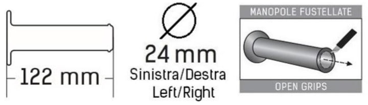 Pair Grips for BMW Motorcycles with Heated Grips Material: Thermoplastic Rubber Colour: BlackLength: 120 mminternal Diameter: 24 mmopen End Color: Black Grip_Compound: Single Compound Grip_Type: Ergonomic Lock-On