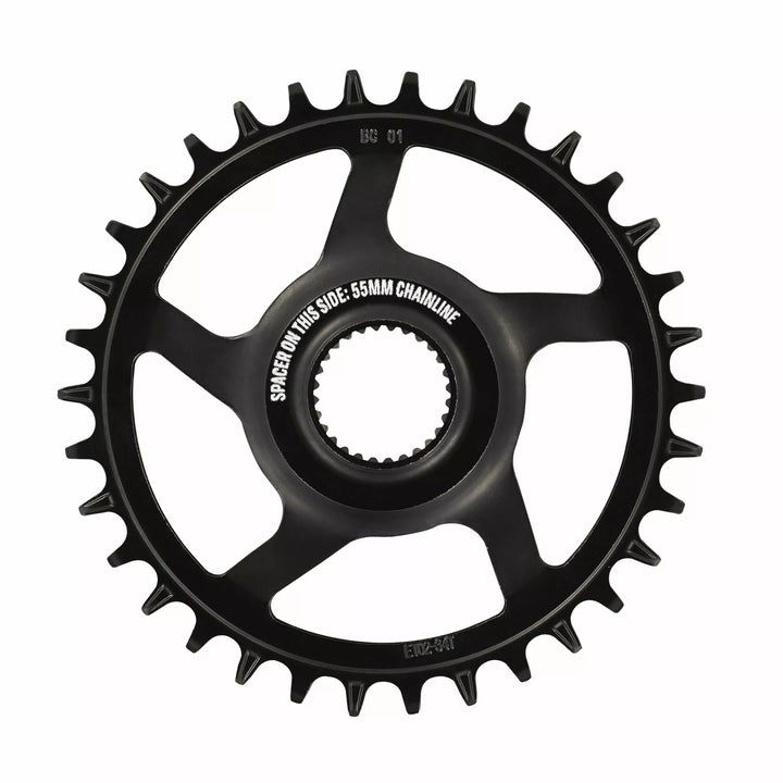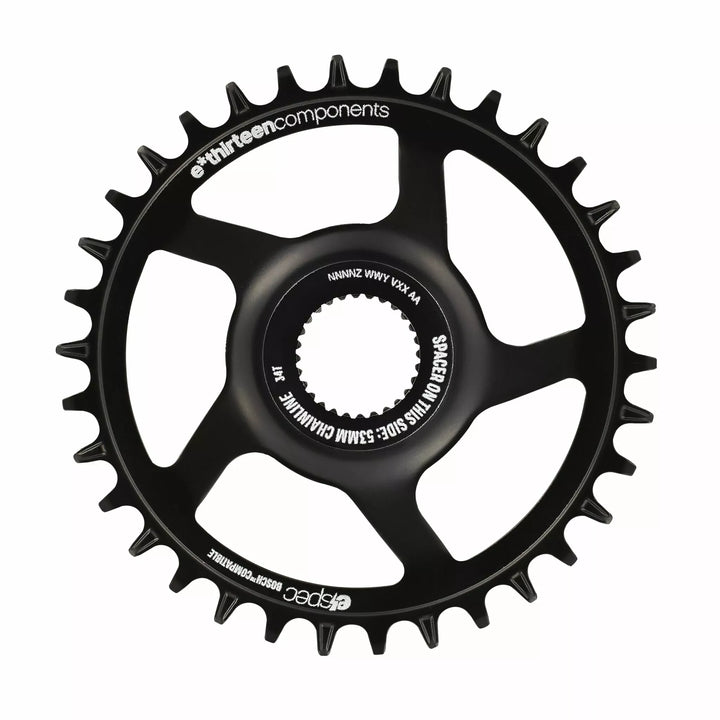 Helix Core E*Spec Direct Mount Chainrings Feature Our Narrow-Wide Tooth Profile, For Reliable Chain Retention and an Extra Long Wear Life. , Designed with an adjustable 13.5-15.5mm offset via spacer, they provide adaptability to Both 53 and 55mm chainlines for Bosch CX and SX Motor Systems. , Helix Core E*Spec Rings Are Cold-Formed From Steel Then Heat Treated to Provide Excellent Durability and Toughness, All at A Price That's Easy on Your Wallet., Chainline: 53 / 55mm., Color: Black.
