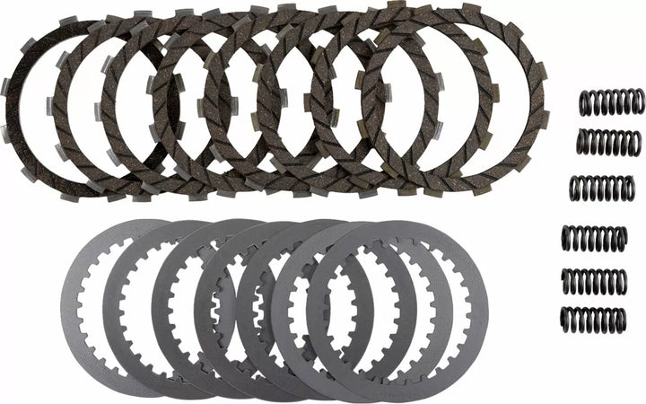 Anti-Swell, Alloy-Impregnated Heavy-Duty Cork-based Facings for Smooth Clutch Take-up, Allows Modulation, Unlike Paper Clutches That Tend to Snatch, Complete Engine Set of Friction Plates, HD Spring and Steel Movael Separates Pandes Pandes PREVES PREVES Height, Built with Swagged Aluminum Carriers That Spread The Load On The Clutch Basket and Prevent Clutch Basket "Dogging", 10-15% Uprated Heavy Duty Clutch Springs