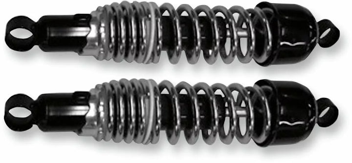 Feature a Glossy Black Body and Short Upper Shroud With Dual Chrome Springs Upper Collar and Stepped Pre-Load Adjusters, Each Shock Set Includes 10 mm, 12 mm and 14 mm Bushings to Suit All Applications