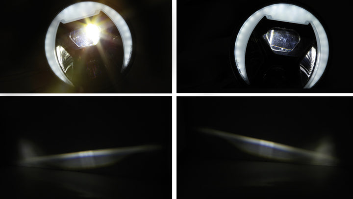 The Highsider Led Headlight with Cornering Light, Offers Clear Advantages Over A Conventional Headlight. The Static Cornering Light Activates an Additional Light When The Motorcycle is tilted in a Bend. Due to the improved illumination you can see more of the curve and what is behind it. The Driver Can Better Adapt to the conditions and situations and is safer on the road. Two Ellipsoid lends in Combination with powerful leds turn night into day and thus combine a strong plus in safety with a polarizing unique look.