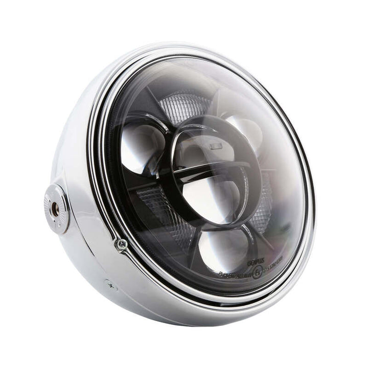 Of UTMOST Importance for Motorcyclists. On many motorbikes, the h4 or h7 lamp shines, more or less twinkling away. Seeing Better Usually Also Means Being Seen Better, Not Unimportant When Summer Turns To Autumn and In Times When Cars Are Increasingly equipped with Bright DayTime Running Lights. Whether for replacement for better visibility at night, Better recognizability during the day, or to give your motorbike a nicer look, if you are looking for a styish and innovative power headlight, the led main headlight is an excellent choice. The Built-in LED Daytime Running Light in Type 11 is the Perfect Way to Improve Visibility During the Day. The Ellipsoidal leds in Combination with powerful leds turn night into day and thus combine a strong plus in safety with a polarization unique look. The Headlamp Is Protected by a High-Quality Metal Housing and is available in Black or Chrome with a black reflector and clear ice cream. The Reflector Emits An Asymmetrical Luminous Flux - Only Approved for Right -Hand Traffic.