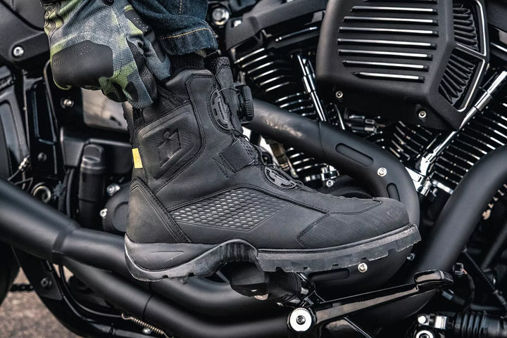 Premium Leather Upper Feature A Water-Resistant Finish, Breathable Event Waterproof Liners Help Keet Dry, Highly Lugged Oil/ Slip-Resistant Rubber Outsoles Provide Peak Motorcycle Performance, Open-Cell Polyurethane Insoles Feet, Ba. Comfortable Fit, Dual D3O® Inserts Provide Ankle Coverage, Reinforced Rubber Toe Caps, Reflective Heel Accents and Shifter Interface NUBS