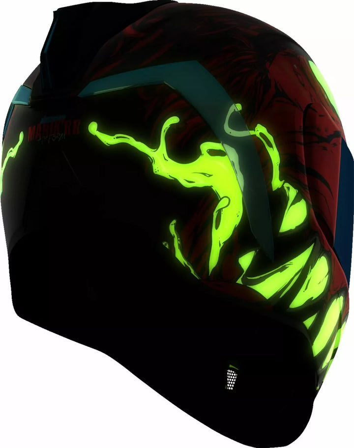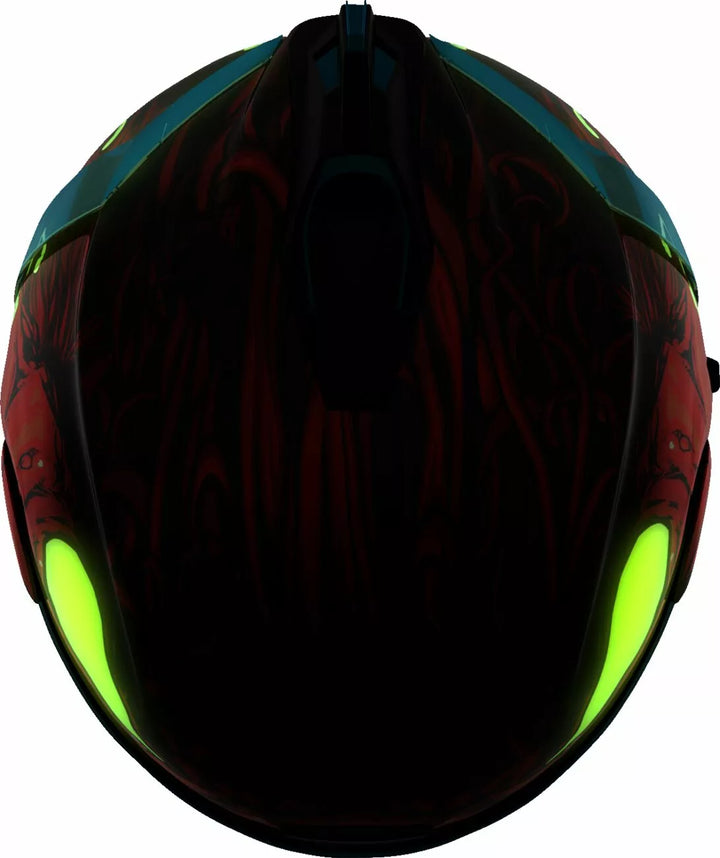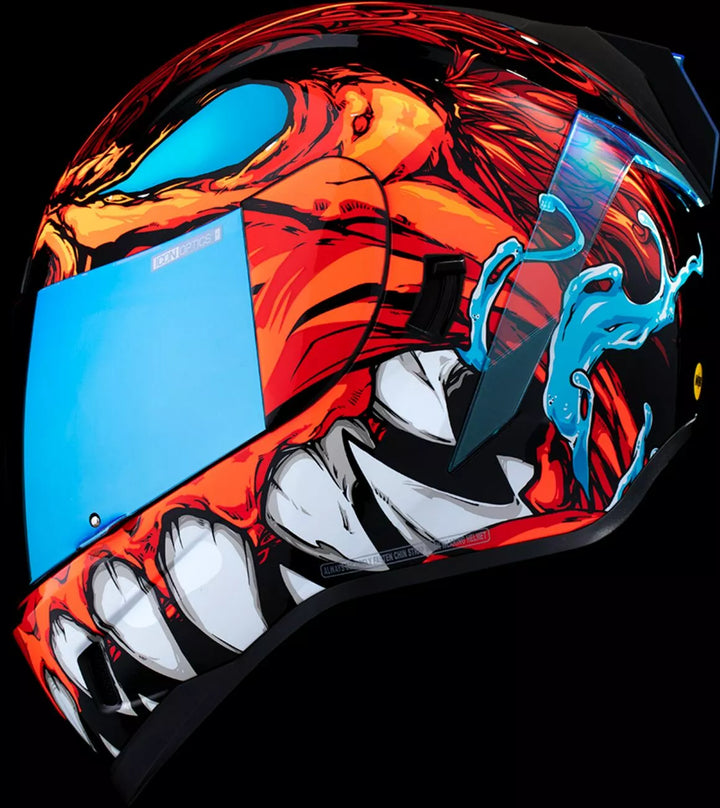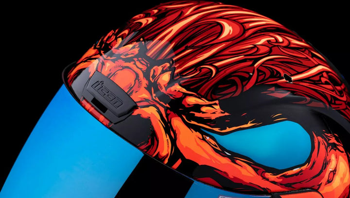 Continuous Venting System, FAG-FREE ICON OPTICS ™ Shield with Rapid-release ™ System, Injection Molded Polycarbonate Shell for Strength, Internal Airflow Geometry, Sculpted NECK Roll, Prolock ™ Switsch, the EXTERIOR WITH LOCKING SHIVING SWEQU Visor must only be used while the main face shield is in the fully closed position, removable Molded Breath Deflector, Removable Hydradry ™ 3-Piece Moisture Wicking Liner, Internal Speaker Pockets Work With Icon's R.A.U. Bluetooth Device, Includes Dark Smoke Dropshield ™ and Rubatone Black Speedfin ™