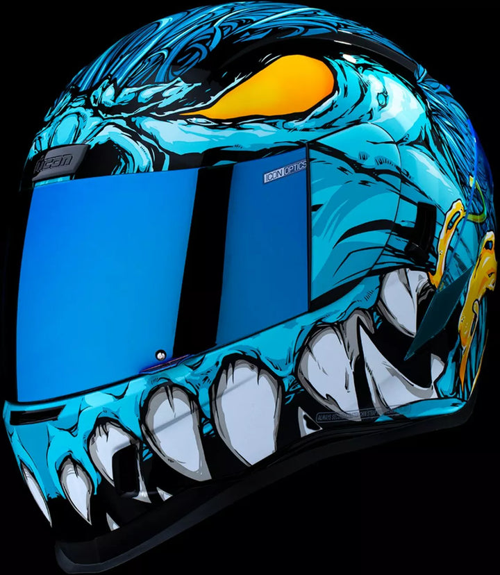 Continuous Venting System, FAG-FREE ICON OPTICS ™ Shield with Rapid-release ™ System, Injection Molded Polycarbonate Shell for Strength, Internal Airflow Geometry, Sculpted NECK Roll, Prolock ™ Switsch, the EXTERIOR WITH LOCKING SHIVING SWEQU Visor must only be used while the main face shield is in the fully closed position, removable Molded Breath Deflector, Removable Hydradry ™ 3-Piece Moisture Wicking Liner, Internal Speaker Pockets Work With Icon's R.A.U. Bluetooth Device, Includes Dark Smoke Dropshield ™ and Rubatone Black Speedfin ™