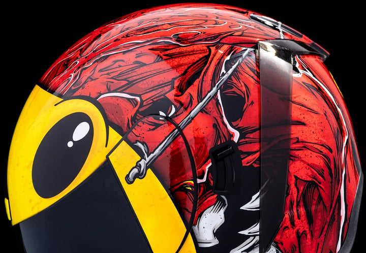 Inside you find it Hydradry ™ 3-part, moisture transporting upholstery, which can easily be removed and washed. The helmet also has Pockets for speakers, perfect for use with Icon R.A.U. Bluetooth device.