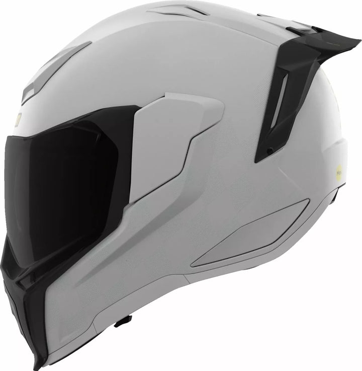 Intermediate-OVal Head form fit, Handcrafted FRP Composite Shell for Optimum Strength With Minimized Weight, FAG-FREE Dropshield Ultra ™ with Exterior Switch, Equipped with MIPS® Safety System, Premium Comfort Liner with Moisture-Wicking Hydrad Release Cheek Pads Installed, Multiple Oversized Intake and Exhaust Ports, Quick-Change Fog-Free Ultrashield ™ With Side Plates, Removable Molded Breath Deflector and Chin Curtain, Recessed Twin Channel Supervent Cooling System Includes Clear Pinlock® Prefered Shield for Added Clarity in Extreme Conditions (Pinlock® Insert Lens Sold Separately), Upgradeable to Helmlink ™ Bluetooth® Communication System (Sold Separately), The Dropshield Ultra oud Ultra ul Fully Closed position.