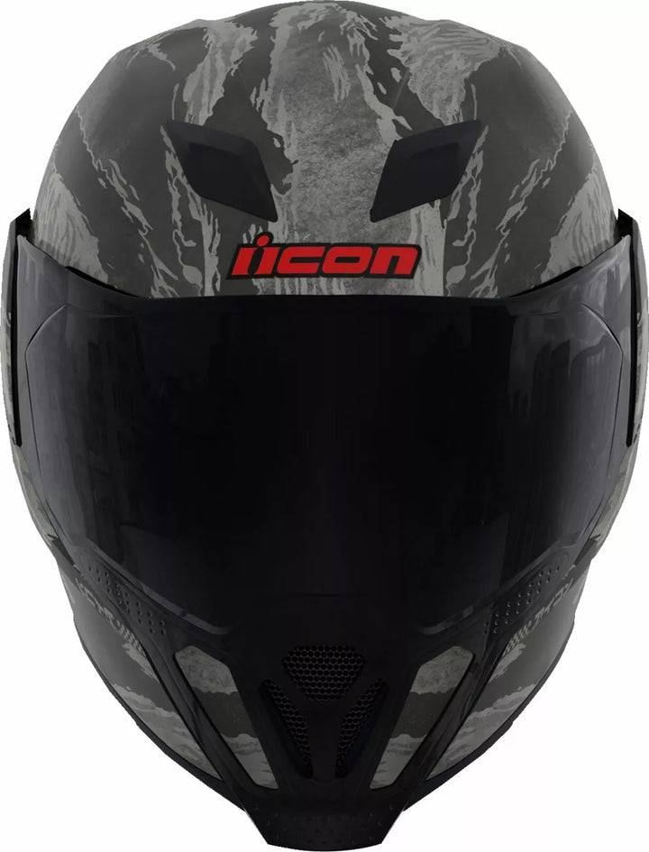 Injection Molded Polycarbonate Shell for Strength, Multiple Oversized Intake and Exhaust Ports, Fog-Free Dropshield ™ with Exterior Switch, Quick-Change Fog-Free FliteShield ™ with Side Plates, Removable Molded Brited Brited Brited Brited Brited Brited Brited. Supervent Cooling System, The Dropshield ™ Visor Must Only Be Used While The Main Face Shield Is In The Fully Closed Position, Internal Speaker Pockets Work With Icon's R.A.U. Bluetooth Device, Removable Hydradry ™ Moisture Wicking Liner, Includes Clear Fliteshield ™ and Dark Smoke Forceshield ™, Includes Dark Smoke Dropshield ™