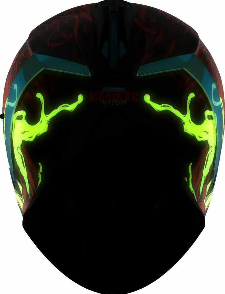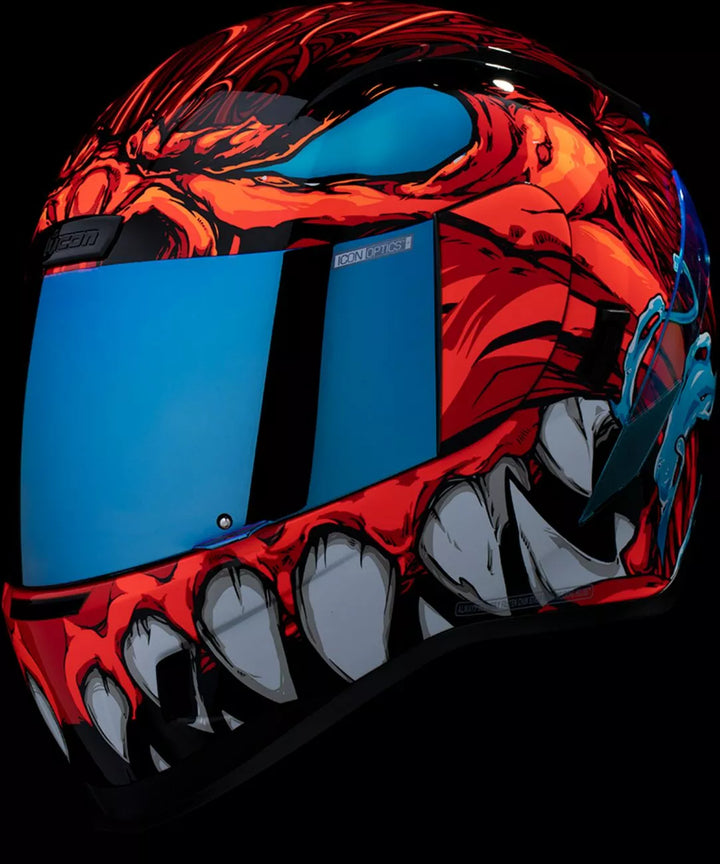 Continuous Venting System, FAG-FREE ICON OPTICS ™ Shield with Rapid-release ™ System, Injection Molded Polycarbonate Shell for Strength, Internal Airflow Geometry, Sculpted NECK Roll, Prolock ™ Switsch, the EXTERIOR WITH LOCKING SHIVING SWEQU Visor must only be used while the main face shield is in the fully closed position, removable Molded Breath Deflector, Removable Hydradry ™ 3-Piece Moisture Wicking Liner, Internal Speaker Pockets Work With Icon's R.A.U. Bluetooth Device, Includes Dark Smoke Dropshield ™ and Rubatone Black Speedfin ™