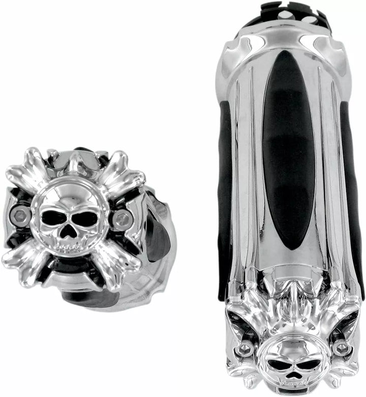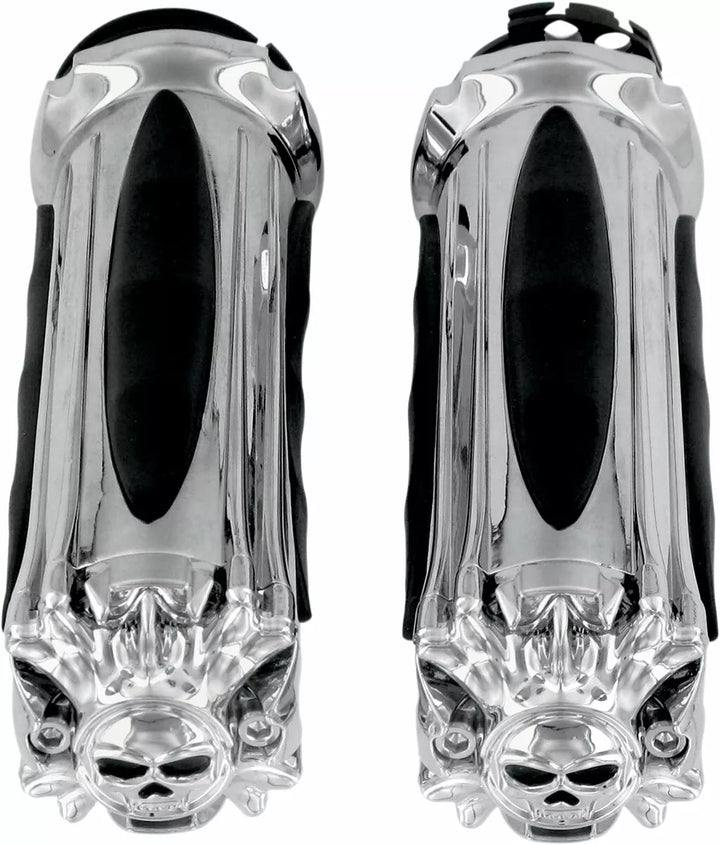Wicked Looks, Wicked Comfort, Grip Bodies Are Smooth Chrome with Vibration-absorbing Rubber Inserts, Zombie End Caps Enhance The Look, Premium Zombie Grips Include Throttle Boss