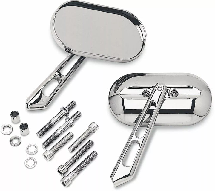 Super-Tough, High-Quality Chrome Mirrors, Small Magnum Plus Mirrors Have 7 "Stems With 5" X 2-3/4 "Mirror Heads, Large Magnum Plus Mirrors Have 7" Stems with 5-5/8 "X 3-1/4" Mirror Heads