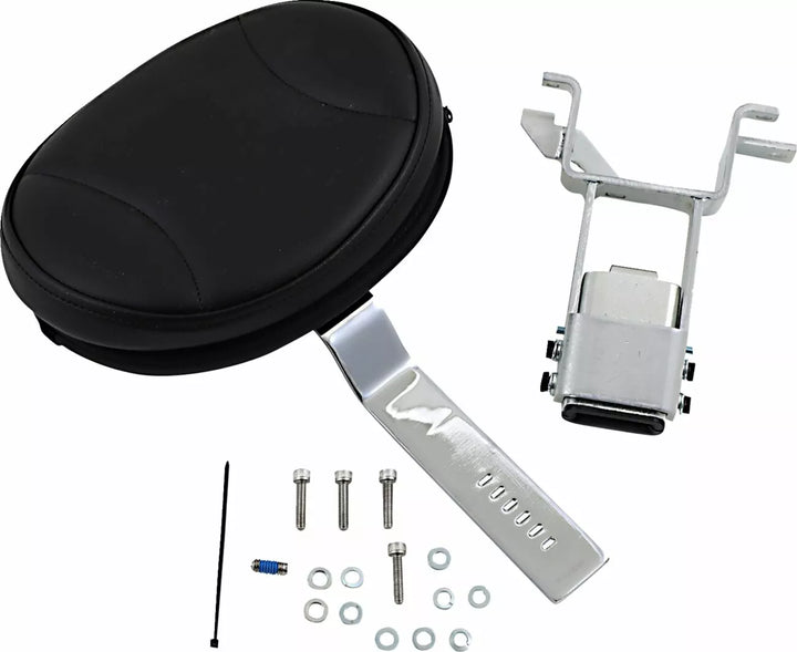 The Pad's Contoured Design Provides The Perfect Amount of Lower Back Support That Can Be Dialed In To Suit The Needs of Virtually Any Rider., Front and Rear Adjudability Can Also Be Set Up Upon Installation To Provide Support Exactly Where's Need. Premium Synthetic Leather Backrest Pad, Pad Measures 7 "Tall X 10" Wide, Includes Steel Mounting Bracket