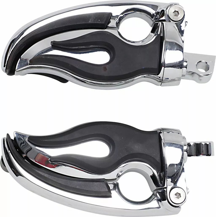 Feature a flip-out arm for use as a heel rest, add comfort on long rides, heel rest has curb feleler tabs on underside, come with male-mount ends, flip-out arm is designed only to be bes a heel rest, pegs withe ends requests.