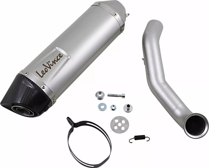 LV One Evo Stainless Steel is the synthesis between tradition and modernity., It combines the leovince classic style looks and innovation in the research of the most performing and lightweight materials., Features, aisi 304 stainless steel sleep, full carbon orb (1,650 ᄚ F), Adjustable Full Carbon Fastening Strap, Laser Etched Leovince Logo