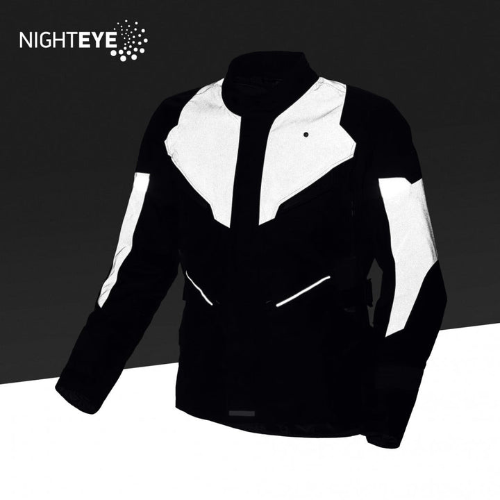 Macna Sonar Jacket Night Eye. The versatile Sonar jacket is made of 600D polyester and Durylon, providing high durability and abrasion resistance. A fixed waterproof membrane keeps you dry, while the removable thermal lining and Airscoop air intakes allow you to adapt to weather conditions. It includes CE-certified protection on the shoulders and elbows, with provisions for back and chest protection for complete safety on the road.
