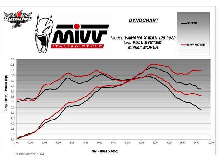 The MIVV mover exhaust is easy to install and capable of Ensuring More Power, More Torque and Less Weight. Oval Shaped and with the End Cap Made of HPP Materials, The MIVV MOVER GIES YOUR SCOOTER AN INIMITABLE AESTETIC LOOK AND THE UNMISTACABLE MIVV SOUND.IT IS PROPOSED IN STAINLESS STEEL WITH A BLACK Finish OBTAINED THANKS TO A SPECIAL CEMIC PAINT THAT GIVE THAT GIVE THAT GYS THAW THAT GYS is equipped with a catalyst making it approved according to ce / ece standard muffler finish: Black stainless steel gas approval: ece approved IF OPTIONALLY CATALYSED (Euro 5) Homologation: CE Homologated HORSEPOWERS PENEFIT: +0 NOIS Catalysed (Euro 5) Catalytic Kit: Requiert Le Catalyseur Acc.073.a1 Position: Standard Level Weight: 4 Weight Benefit: -0.8