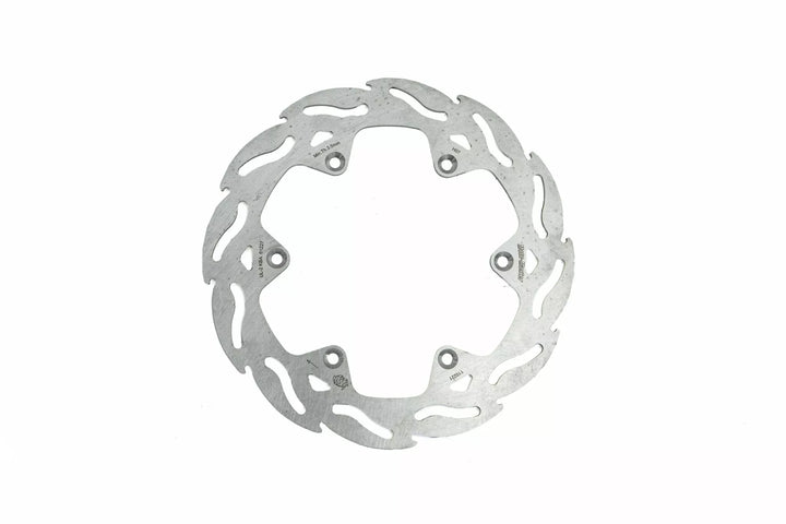 Flame Shaped Valenting Slots And Outer Perimeter Ensure An Equal Amount of Contact Surface Between The Brake Pad and Disc Throughout The Who Rotation of the Disc., Smooth and More Predictable BRAKING ACTION WHICH ALLOWS YOU TO BRAKE HARDER. Double-grinded for Perfect Fitment and Flatness, for Best Performance We Recommend Using Moto-Master Brake Pads with the Matching Pad Compound That Best Suits Your Type of Riding.