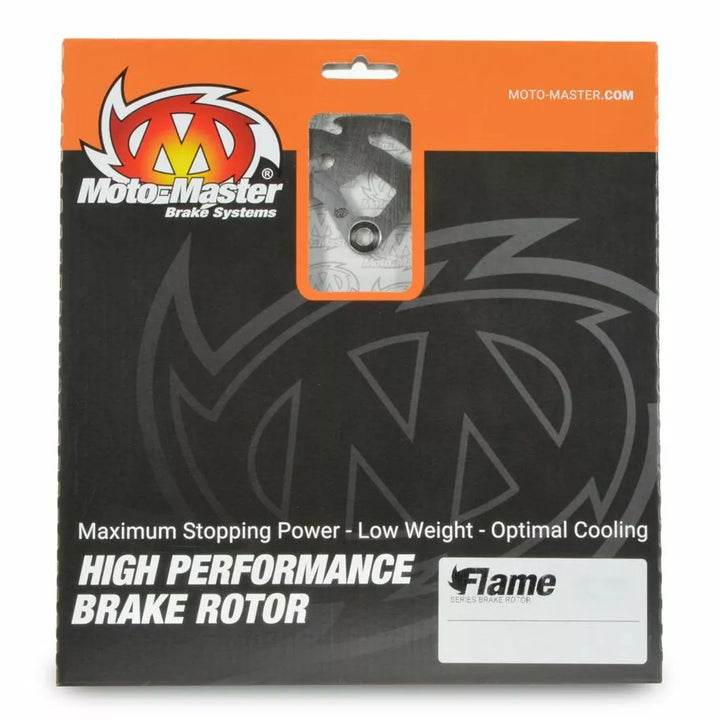 Flame Shaped Valenting Slots And Outer Perimeter Ensure An Equal Amount of Contact Surface Between The Brake Pad and Disc Throughout The Who Rotation of the Disc., Smooth and More Predictable BRAKING ACTION WHICH ALLOWS YOU TO BRAKE HARDER. Double-grinded for Perfect Fitment and Flatness, for Best Performance We Recommend Using Moto-Master Brake Pads with the Matching Pad Compound That Best Suits Your Type of Riding.