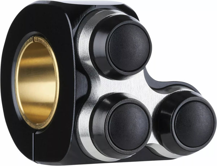 The Mo.switch Basic Is A Universal, High-Quality Push-Button Control for Handlebars with 1 Inch or 22 mm (7/8 inch) Tube diameter in a simple, elegant design. In Combination with an Electronic Push-Button Control Box (Not included), these CNC-Made Push-Buttons Can Switch All Electrical Units Such as Lights, Indicators, Electric Starters, Horn and Much More. Optionally, The Button Holder (Inlay) is also available with a silver anodized color. The Compact Housing is equipped with eiter Two or Three Push Buttons. All buttons are Always in Direction to the Driver., The Two or Three Buttons Per Unit Are Always Black. A Hidden M4 Stainless Steel Mounting Screw Clamps The Housing Securely to Each Handlebar., The Individual Buttons Are of High Quality, Very Robust and Proted Against Vibration and Splash Water (IP65). They Allow A Safe Operation-Even When Operating With A Glove., A Single-Wire or Two-Wire Wiring is Easily Possible by Two Terminals Per Push Button. One Terminal for Ground is Already Provided Internally for Single-Wire Wiring. Cable routing in the handle bars is therefore easy., In case of Possible Damage, The Single Push-Buttons Are Available Individual and Can Be Replaced., The Mo.switch Basic Is Of Course Compatible With All Common Push Pus