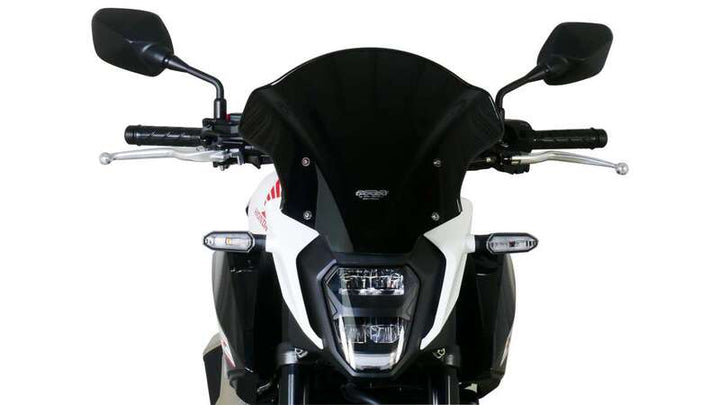 Touring Windscreen with Optimum Wind Protection That Integrates Beautifully Into the Motorbike. Length (mm): 461 Width (mm): 356 Height (mm): 178 Color: Black Crank Lenght (mm): Null Crank Material: Null Windshield Type: Touring