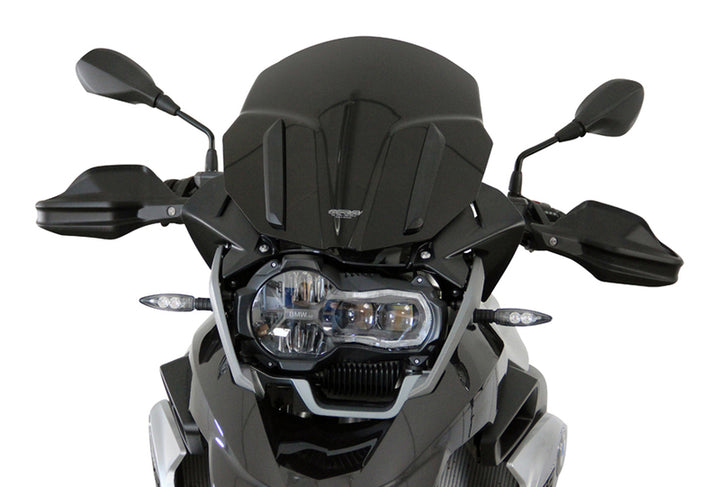 MRA Touring Windshield "TM" is a touring-type windshield with extra length and height, created by an upward-sloping rear section across its entire width. This design is intended to deflect wind pressure away from the rider, creating a calm and comfortable riding experience, even on longer journeys.