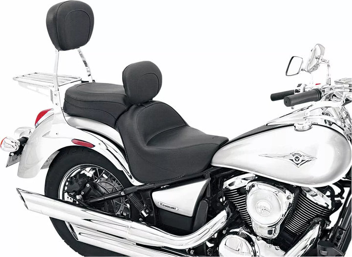Deeply Contoured Front Bucket; Passenger Seat Angles Forward To Support The Rider's Back, Rounded Thumbscrew Adjusts Backrest forward and back up to 2 "while you are seated, removable Contoured Driver Backrest Pad Measures 7" H x 12 "W x 1.5" No Studs or Conchos for a Clean, Smooth Look, Built-in Steel Support Wings in the Passenger Seat, Backrest Easily Snaps Into Four Height Positions, Backrest Pivots to Match Your Back Angle, Premium-Quality, Expanded Vinyl Cover, Passenger Backrest Sold Sold