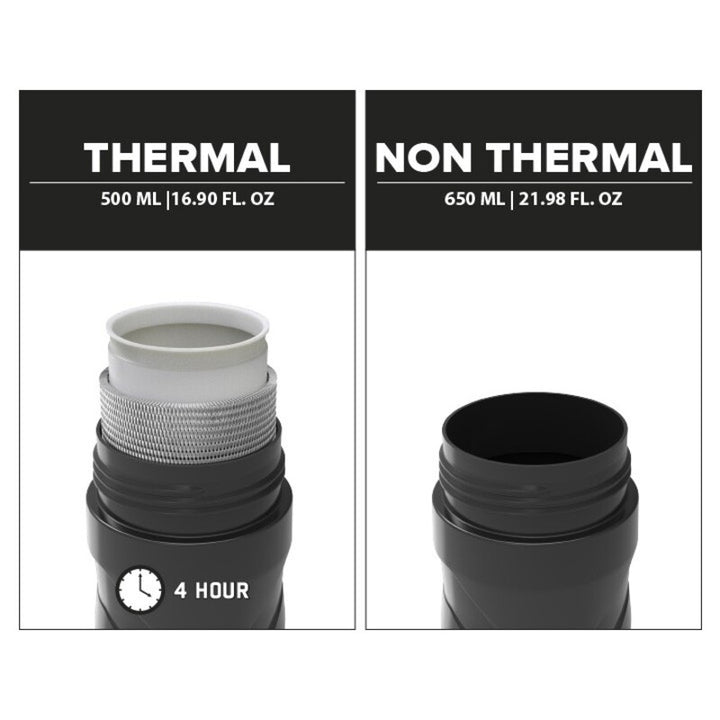Designed in a small body, but with an INCREASED CAPACITY, T500 Offers Not Only An Excellent Squeeze As Also A Superb 4Hour Thermal Capacity. T500 is Quite Smaller Than Those Thermal Bottles That We Are Used To and Will Be Your New Top Accessory For This Summer Cycling or Outdoor Activities. This is the thermal bottom that everyone will desire for this summer season. Due to its Clever design, you can use it as a thermal bottom to keep your beverage colder, on Those Hot Sunny Days, or Use it as a standard bottom and INCREASE THE BOTTLE CAPACITY. This Non-Hermal Option Increases The Bottle Capacity to 650 ml. To use the Thermal Option, Keep the Cup and Foam? 500 ml Capacity. In the Thermal Option, AT, for Example, an outside temperature of 23 ° C, the temperature of the liquid inside the bottom will go from 5 ° C to 15 ° C Difference. This Thermal Capacity is Provided for the Interior Foam with an Aluminum Membrane that Prevents The Temperature of the Water Change Over A Period of Time. The Protective Cap of the Bottle, Besides The Benefits of Usage on a More Adventure Cycle Path, is also a good option for your gym sessions, long walks, or trails. Assembly: Null Color: Null Diameter: Null Homologation: Null Light Type: Null Material: Null Max Load: Null Packing: Null position: Null recommended use: All size: null tilting system: null