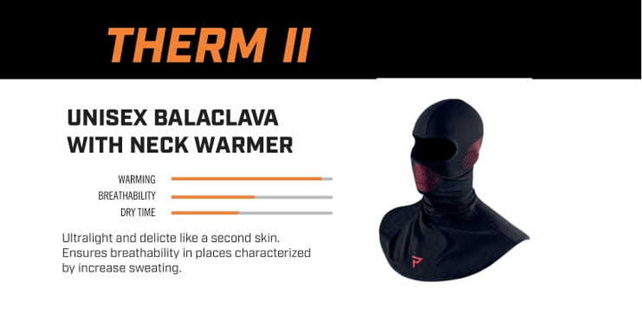 Rebelhorn Therm II balaclava Is it ultimate solution for motorcyclists running in chilly and windy conditions. With windproof and waterproof collar as well as a ventilating upper part, it ensures it comfort and shelter without compromising the respiratory capacity.