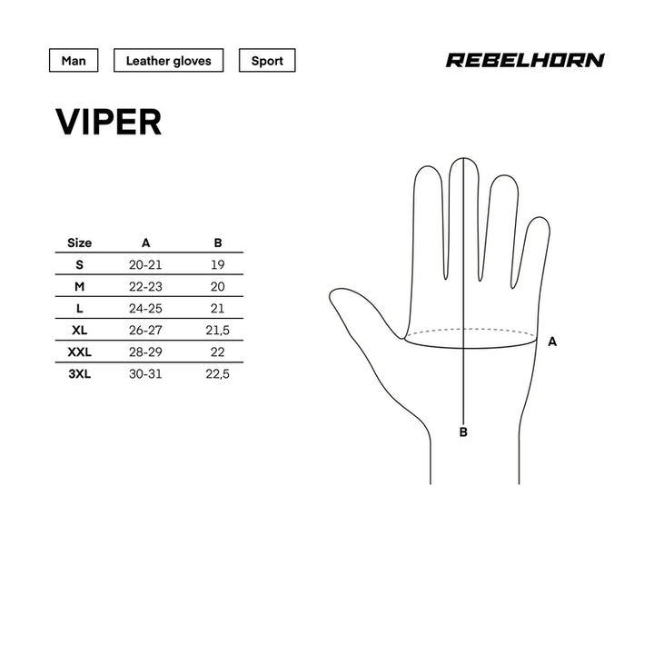 Rebelhorn Viper is Sporty motorcycle gloves Designed for high comfort, safety and smooth handling of the motorcycle. With tough knuckle protection, palm slider and reinforcements in the palm offers these gloves maximum protection and performance. At the same time, ensures perforated panels and touchscreen compatibility that you get one comfortable and practical glove for both city driving and sporty skiing.