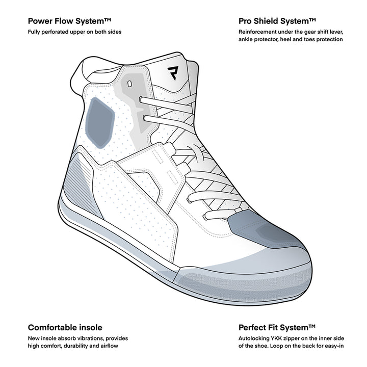 Rebelhorn Vandal II are the perfect motorcycle shoes for those looking for a stylish, comfortable and safe shoe for daily city driving. With its modern design and functional construction, these sneakers combine the best of both fashion and safety - perfect for the urban motorcyclist.