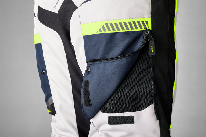 Collection: 2025 Color: Blue & White Gender: Men hip_protection: Yes Homologation: CE Homologated Jacket -Pants_Connection: Yes Knee_Protection: Yes Material_Apparel: Polyester Range: Maverick Evo Reflective_strips: Are RemovaLips: Are RemovaLs: Are Remoe —rstrips. Sliders: No use: Touring Weatherproof: Waterproof