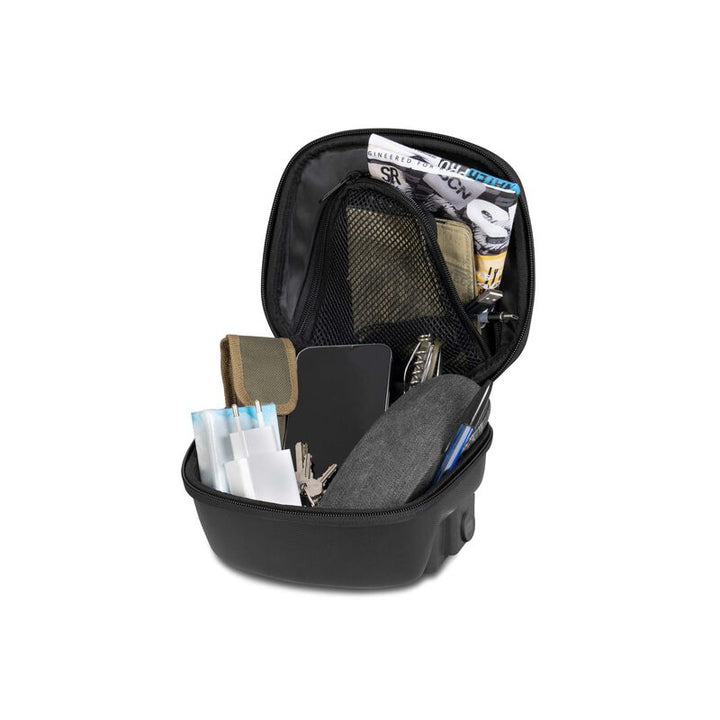 SHAD Click System E03C is a practical and functional tank bag with 2 kg load capacity designed for easy attachment to your motorcycle. It is made with Click System (patent pending) which makes installation quick and easy, and the bag can be easily removed with a push-button mechanism.