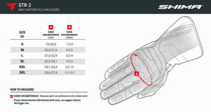 Shima STR-2 has perforated leather on the fingers for optimal ventilation during hot days. The seams used in this model are external to eliminate the pressure on the fingers, and they are designed with a resilient structure, which makes it easier to work on the gear controls on longer trips. Many folds and inserts of flexible material make the glove easy to adapt to the varying position of the hand. In addition, the accumulation of materials not only increases mobility in places that are most exposed to tension, but also has a protective function. A slip -free patch mounted on the inside of the hand prevents the grips from sliding and helps to stabilize it.