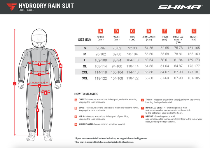 Hydrodry Waterproof trousers for water protection are carried on top of the motorcycle pants.