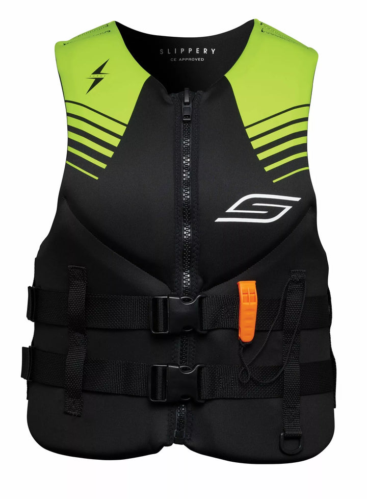 The Unique Segmented Foam Design Provides Multiple Hinge Points For Greater Flexibility and Comfort., The Surge Neo Vest is a Serious Performer that offers aggressive styling for great visibility on the water., "D" Ring for clip Style Lanyards. 1.5 "Adjustable Belts with Buckle Closure.