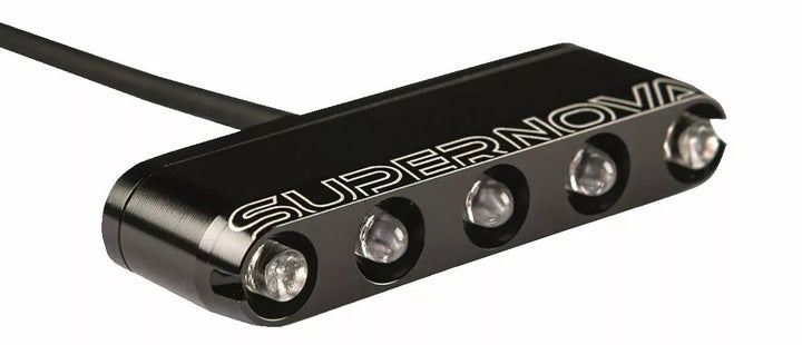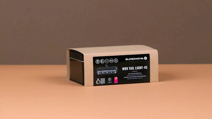 The Supernova M99 Tail Light 45 is the First Rear Light for Fast E-Bikes With Integrated Brake Light and License Plate Light., Previous, Up to Three Lights Were Necessary to Cover All These Functions. With this New Generation of Tail Lights, Everything is Encapsulated in a stylish, Waterproof Aluminum Housing and Can Be Elegantly Attached to A Bike. , Five Highly Efficient Leds Make the Fast E-Bike Clearly Visible From A Distance and From The Side. , The Brake Light Gleams with Five Times the Brightness of a Standard Tail Light, Consumes Only 0.9 Watts, and Relialy Warns Following Traffic. , The Homogeneous License Plate Lighting is Integrated Discreetly Into the Underside of the Stylish Housing., Voltage: 12 V Version, 0.4 W (Rear Light), 0.9 W (Brake Light, Light Intensity: 9 CD (Tail Light), 50 CD (Brake Light). Dimensions: 22.3 x 61.5 x 11.5 mm, Standard Mounting Width 50 mm., Weight: 25 g., Cable Length: 2,000 mm., Scope of Delivery: 1 x Tail Light, 2 x 2-Fold Connectors, 2 x 3-Fold Connectors, 2 x Mounting Screen M4