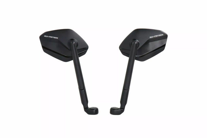 SW-Motech Manufactures The Adjustable Mirrors In A Modern and Flat Design From High-Quality Forged and Black Anodised Aluminum. , The Mirror Arms Consist of Continuously Adjustable Elements and Can Each Be Extended by 30 Millimetres. This Allows the Height and Length of the Mirrors to Be Adjusted to the Requirements of the Respective Pilot., This Sport Mirror Set has a long mirror arm. Mirror Arm Length: 182 mm., Modern and Flat Edge Design., Partial Areas and Functional Surfaces milled., 4 Different Adjustment Possibens for Best Possible Alignment., Stepless Rotation and Includes of the Mirror Arm. Mounting on Existing Mirror Connection., Scope of Delivery: 1 x Mirror Set Sport, 1 x Mounting Material for Mirror Set & Mounting Instructions.