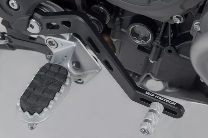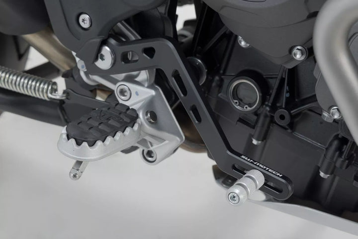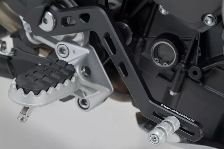 Bike-Specific Aluminum lives Arm, Robust Construction, Perfect Fit: CNC-Milled, Hart-Coat ᆴ Coated Aluminum, High-Quality Milled for Maximum Stability, Treat Street Included by Default in Delivery. Slipping., Platform features Various Adjustable Positions, Adventure Tread for Off-Road Touring (Sold Separately), 1 x Brake Pedal, Mounting Instructions, Mounting Material
