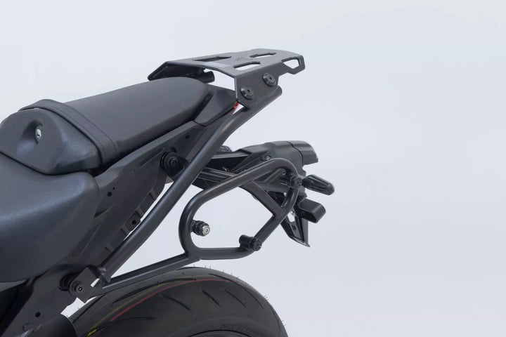 The Precise, Bike-Specific Development of the Side Carrier Allows for Simple and Secure Mounting on Original Attachment Points on the Bike, Side Bags Can Be Attached and Removed with a Few Hand Grips via The Quick-Lock System, Without The Driver To Forem The Legend Gear LC1/LC2 SIDE BAGS, The Urban ABS Side Cases, The Sysbag with Adapter Plate, and the Universal Side Bracket Number Plate, Side Carrier Adapts Perfectly to Your Motorcycle's Look, Bike-Specific Development EnsVelopment EnsTeales The best fit Adapter Kit is included in Delivery