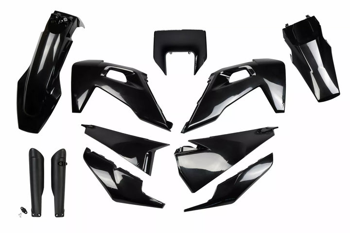 Replace all your plastic at once, oem matches stock bike colors; All Black, All White and Other Colors Also available, Molded-in Colored Parts Won メ T Show a Different Color When Scratched, Predrilled Pieces Mount Easily to Stock, Complete Body Kits Include Front and Rear Fender, Radiator Cover, Radiator Cover